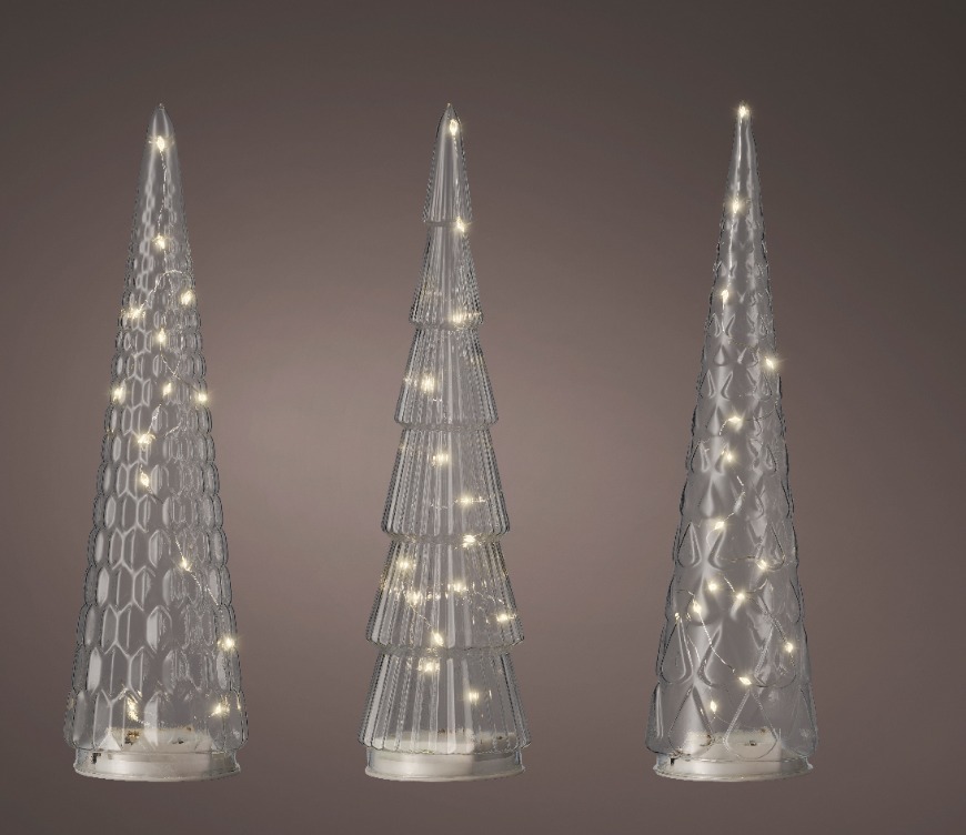 Ապակե տոնածառ լույսով, clear/warm white ներսում դեկորացիա, 35սմ