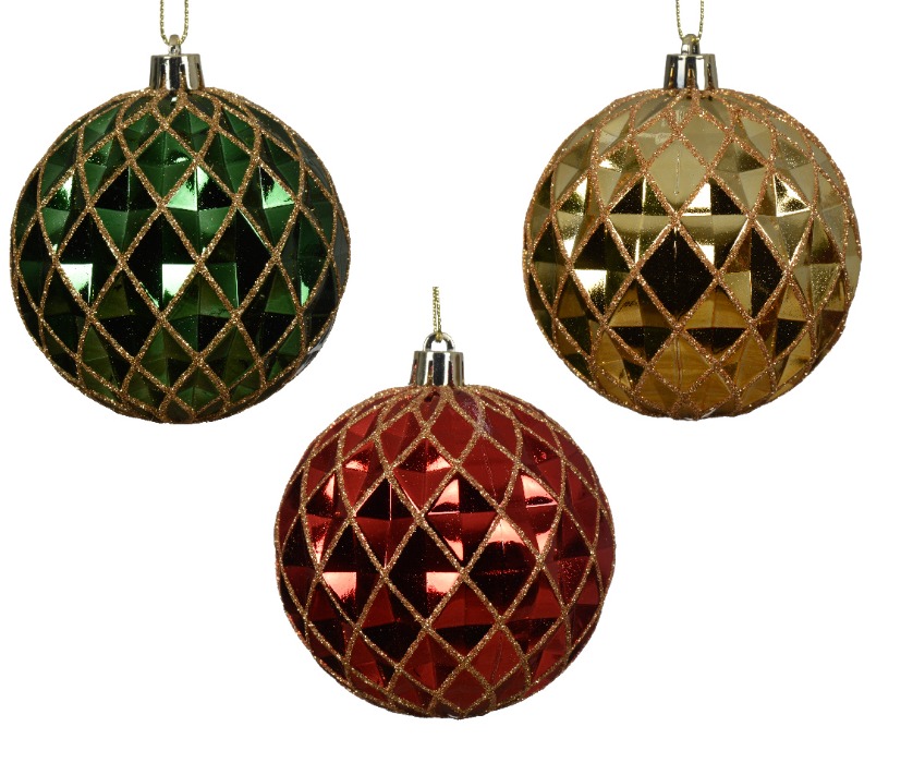Տոնածառի խաղալիք ոսկեգույն շեղանկյուններով, red/pine green/light gold, 8սմ