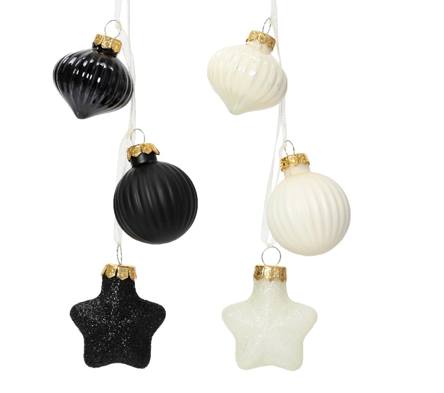 Տոնածառի ապակե խաղալիքներ, bundle wool white/black mix, 3.5x4x11.5սմ