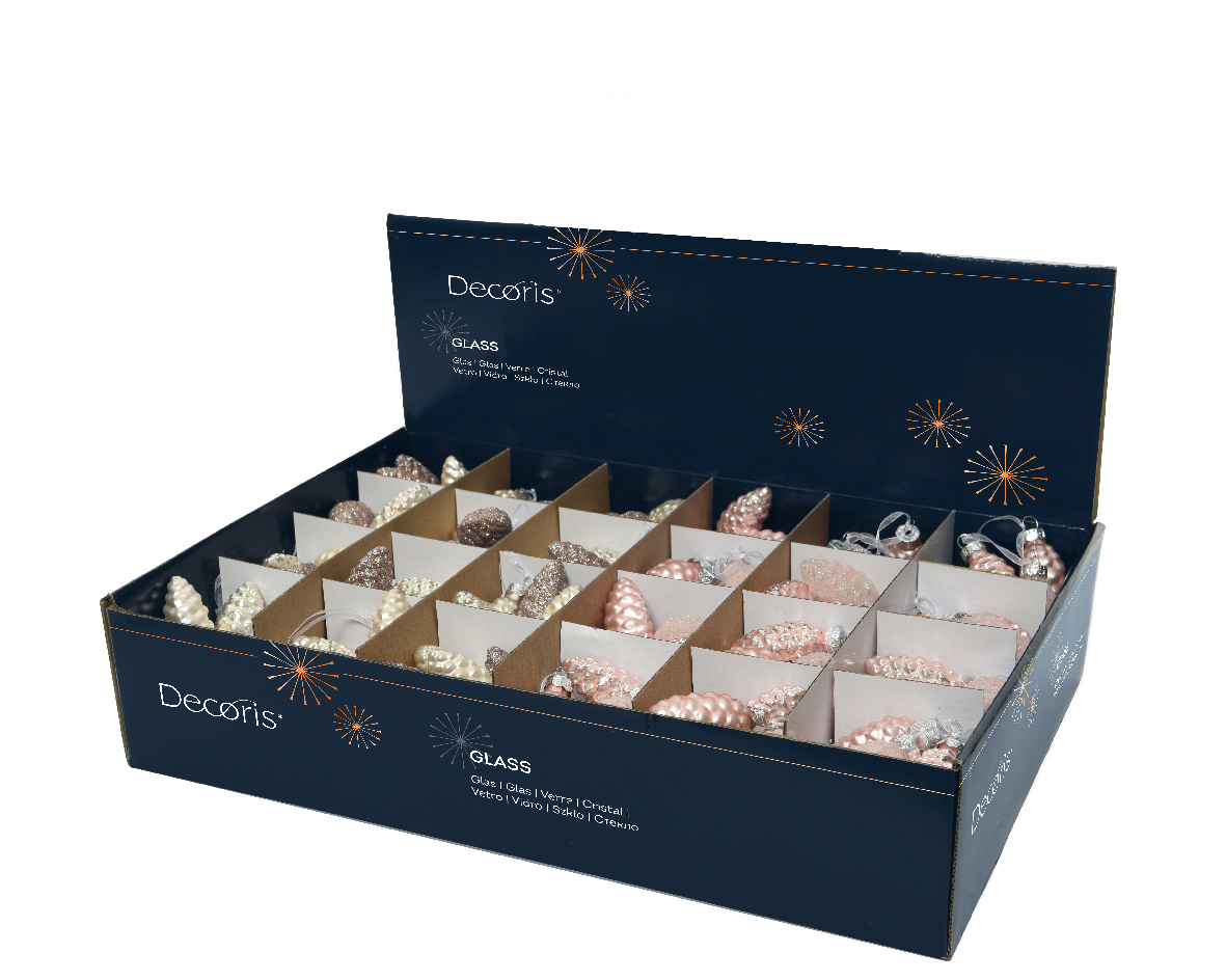 Տոնածառի ապակե խաղալիք կոն, 3տեսակ pearl/blush pink, 6սմ