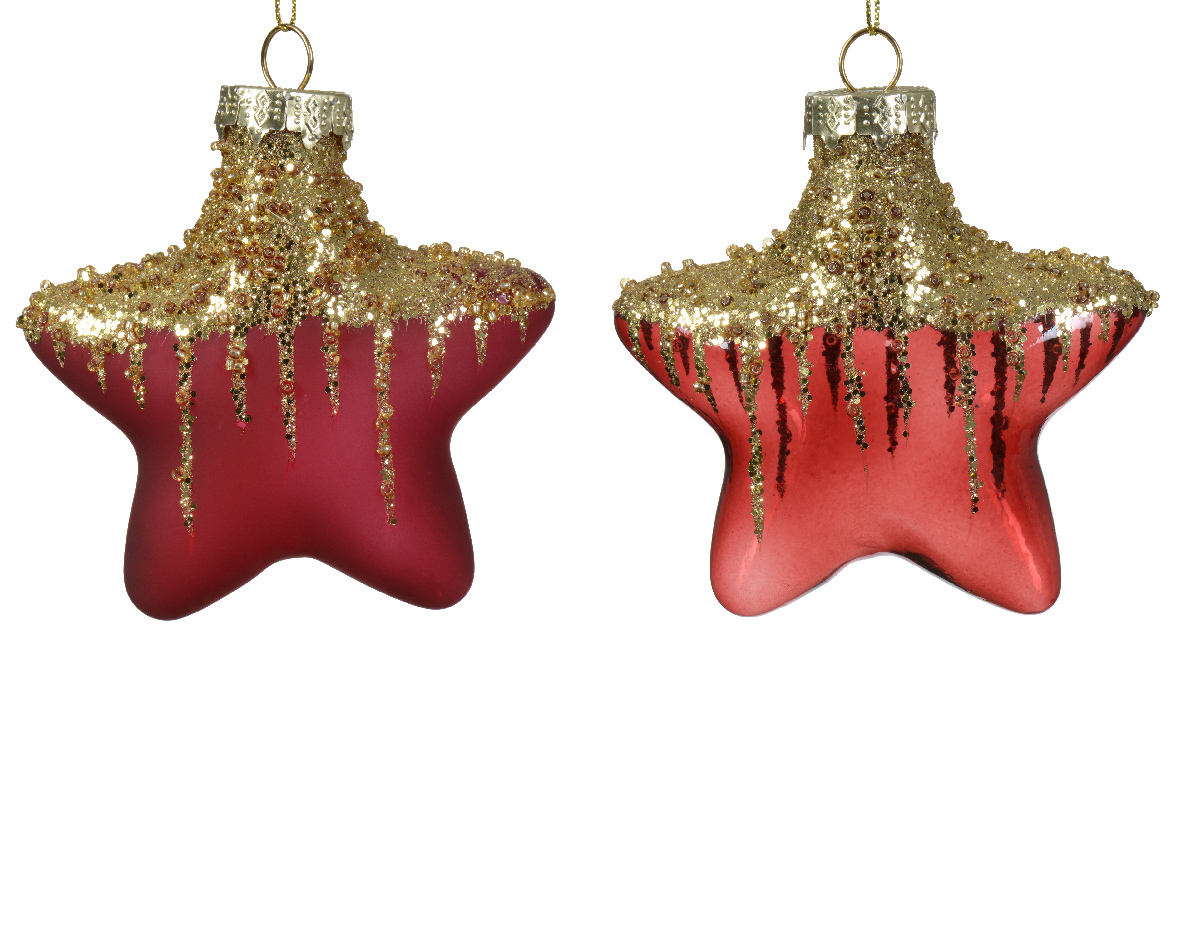 Տոնածառի ապակե խաղալիք, աստղ, oxblood, 10սմ/Տուփ 2 հատ/