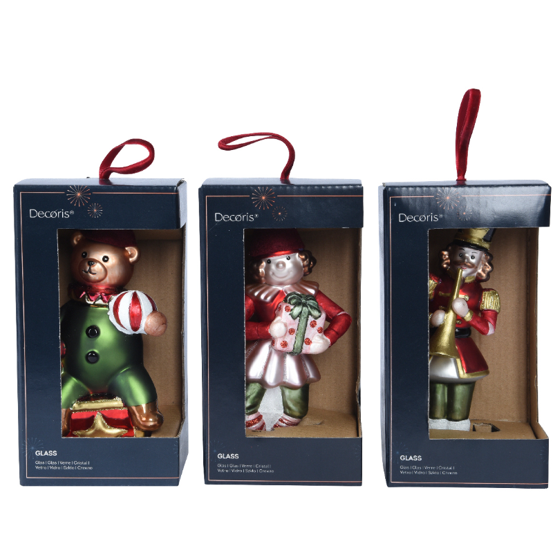 Տոնածառի ապակե խաղալիք արջ/ծաղրածու/զինվոր, 16.8սմ