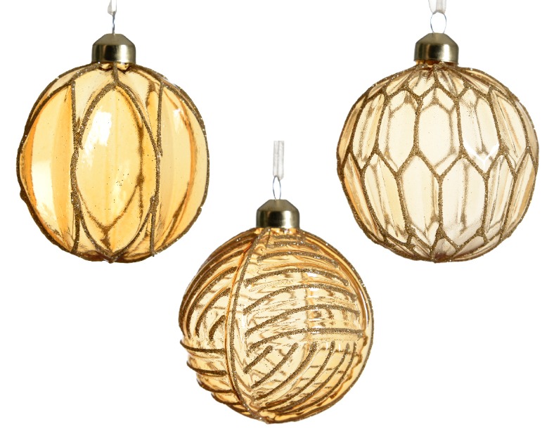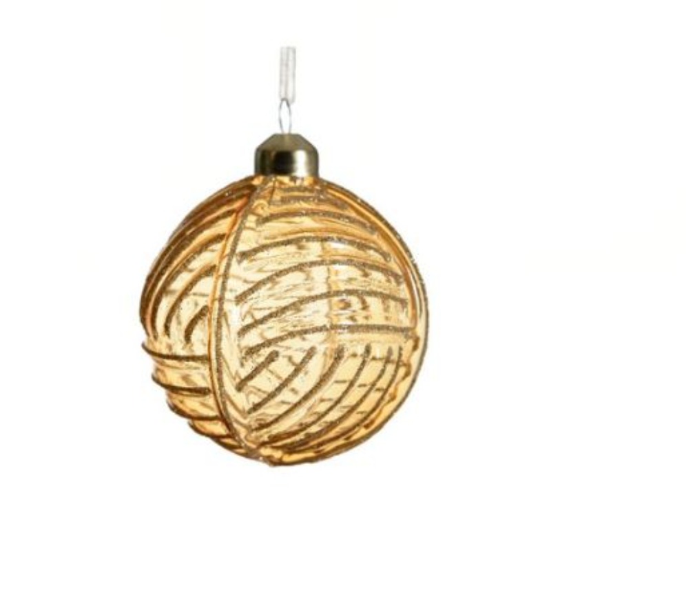 Տոնածառի ապակե խաղալիք, գունդ, ոսկեգույն ուղիղ գծերով, 8սմ