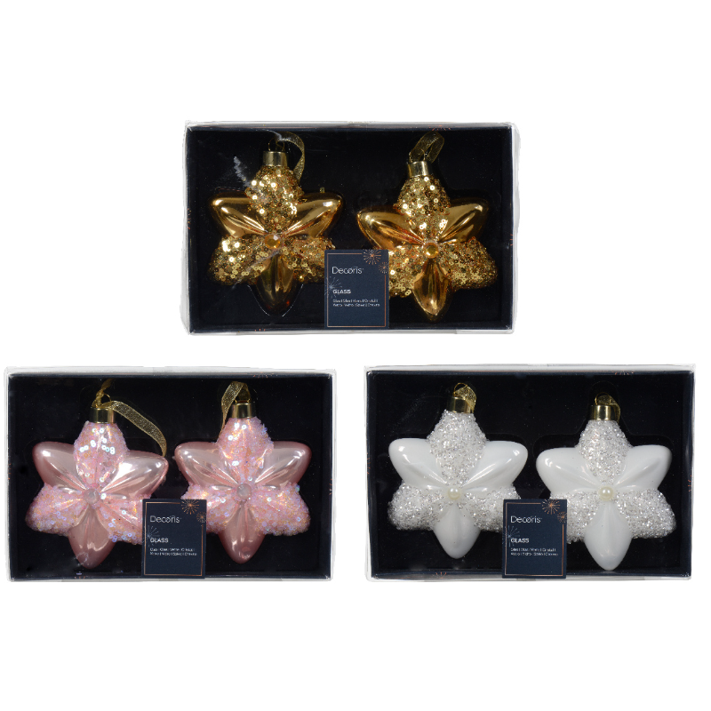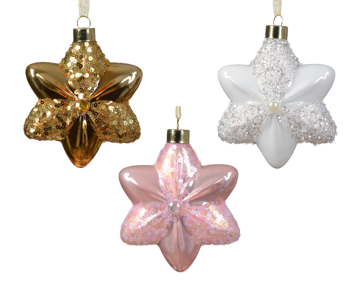 Տոնածառի ապակե խաղալիք, աստղ, blush pink/light gold/winter white, 10.8սմ/Տուփ 2 հատ/