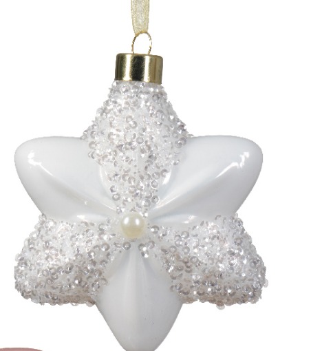 Տոնածառի ապակե խաղալիք, աստղ, blush pink/light gold/winter white, 10.8սմ/Տուփ 2 հատ/