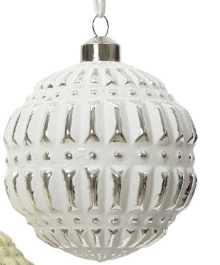Տոնածառի ապակե խաղալիք, winter white/white mint/rosemary green, անտիկ նախշով, 8սմ