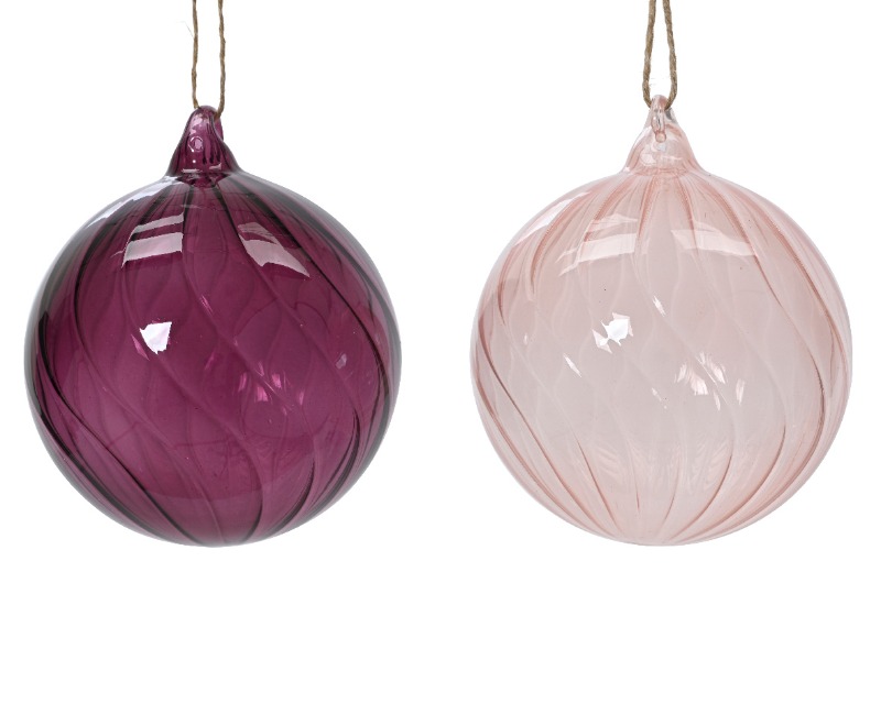 Տոնածառի ապակե խաղալիք, blush pink/dark mauve, պտտվող նախշով, 10սմ