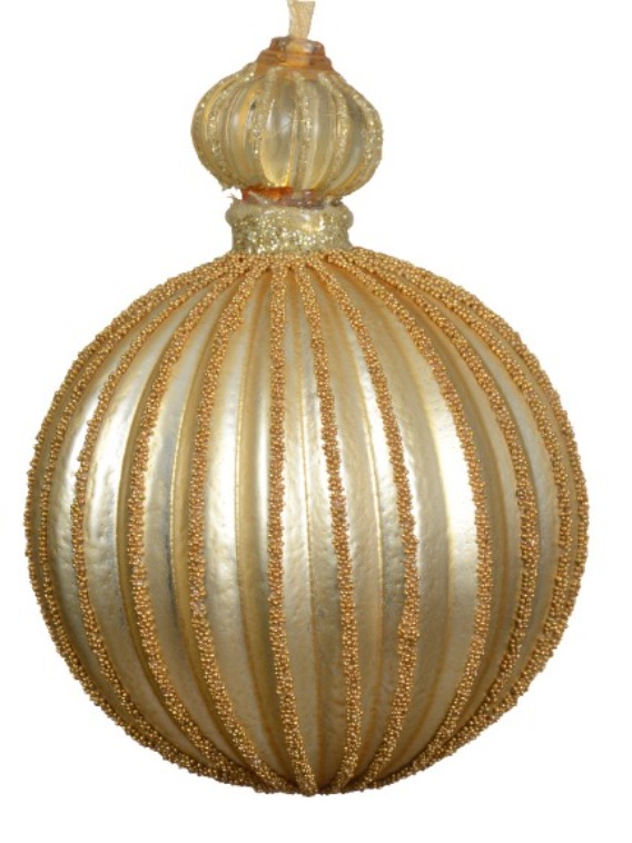 Տոնածառի ապակե խաղալիք գունդ, light gold, պտտվող և ուղիղ փայլուն գծերով, 10.5սմ