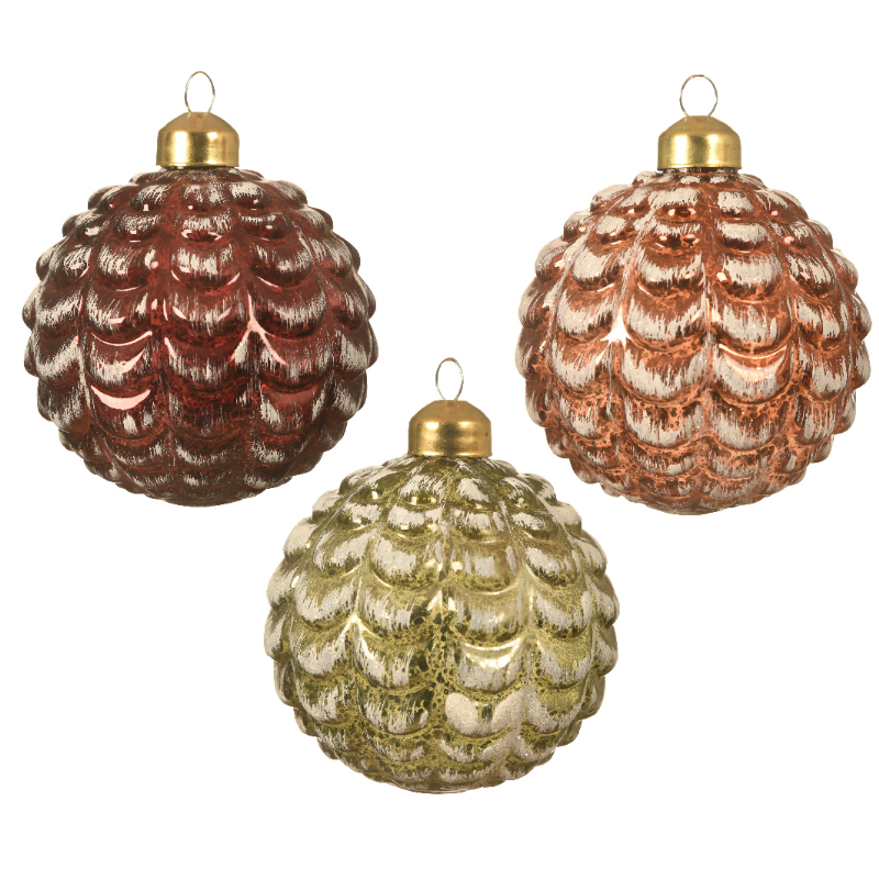 Տոնածառի ապակե խաղալիք, red copper/espresso, ոսկեգույն գծերով, 8սմ/Տուփ 3 հատ/