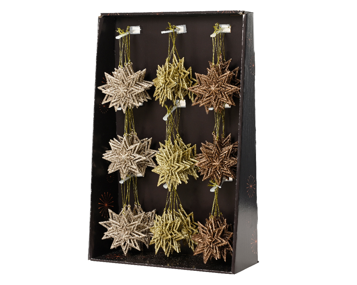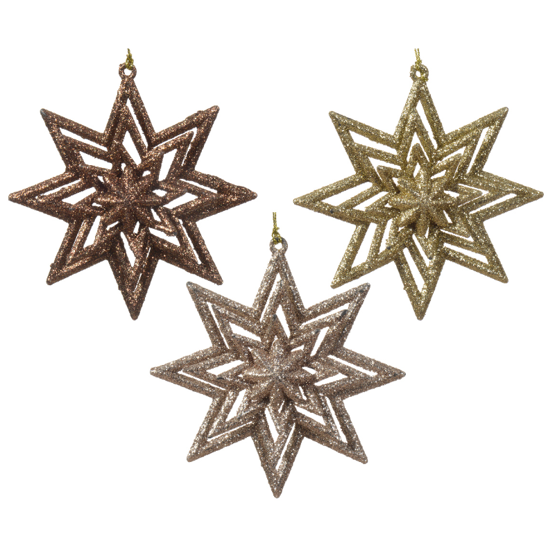 Տոնածառի խաղալիք փայլերով աստղեր, pearl/light gold/ginger brown, 11սմ