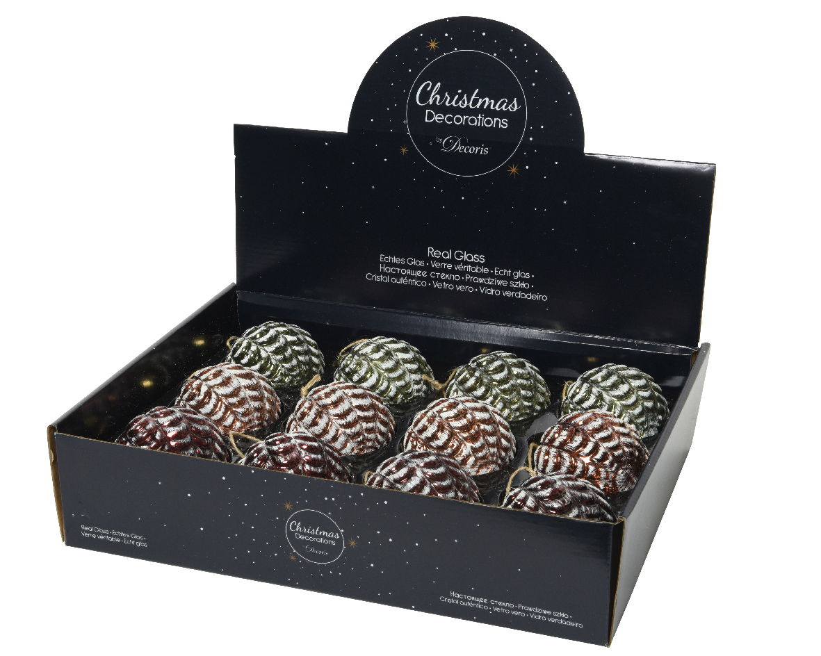 Տոնածառի ապակե խաղալիք սպիատակեցված ծայրերով, 80մմ