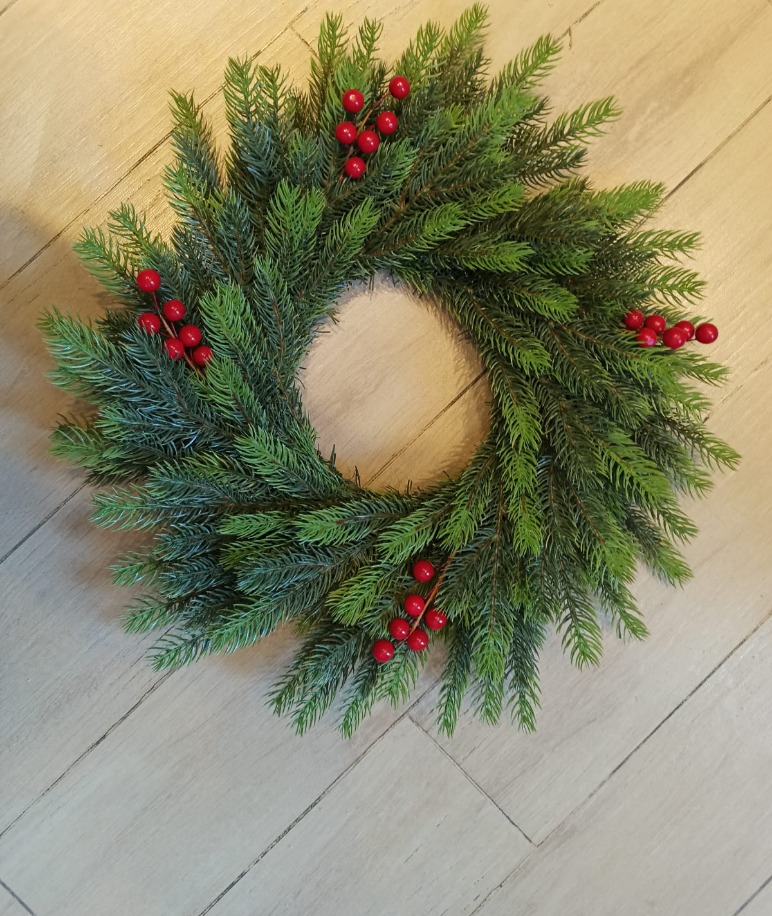 Ամանորյա օղակ ձյունապատ, կարմիր հատապտուղներով NATURAL SPRUCE SNOW-COVERED PVC, 40 սմ