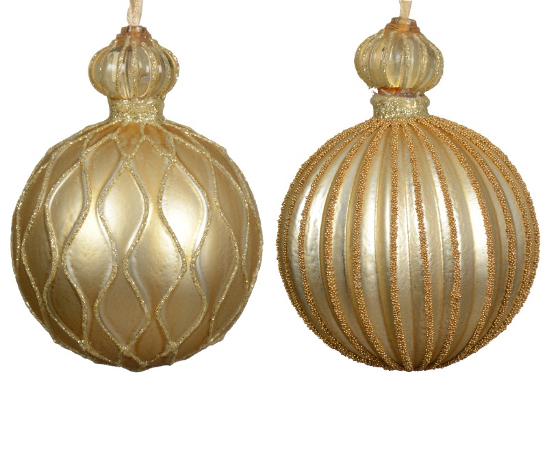 Տոնածառի ապակե խաղալիք գունդ, light gold, պտտվող և ուղիղ փայլուն գծերով, 10.5սմ