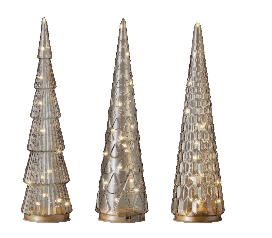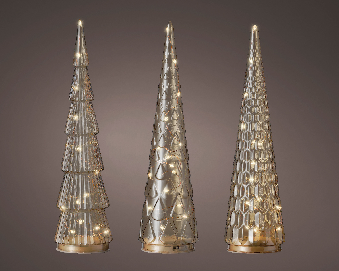 Ապակե տոնածառ լույսով, amber/classic warm, ներսում դեկորացիա, 35սմ