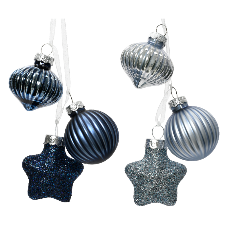 Տոնածառի ապակե խաղալիքներ, bundle hazy blue/night blue, 3.5x4x11.5սմ/Տուփ 72 հատ/ duplicate