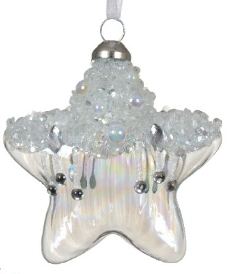 Տոնածառի ապակե խաղալիք, աստղաձև, transparent iris/blue ice/night blue, վրան բյուրեղյա քարեր, 8սմ