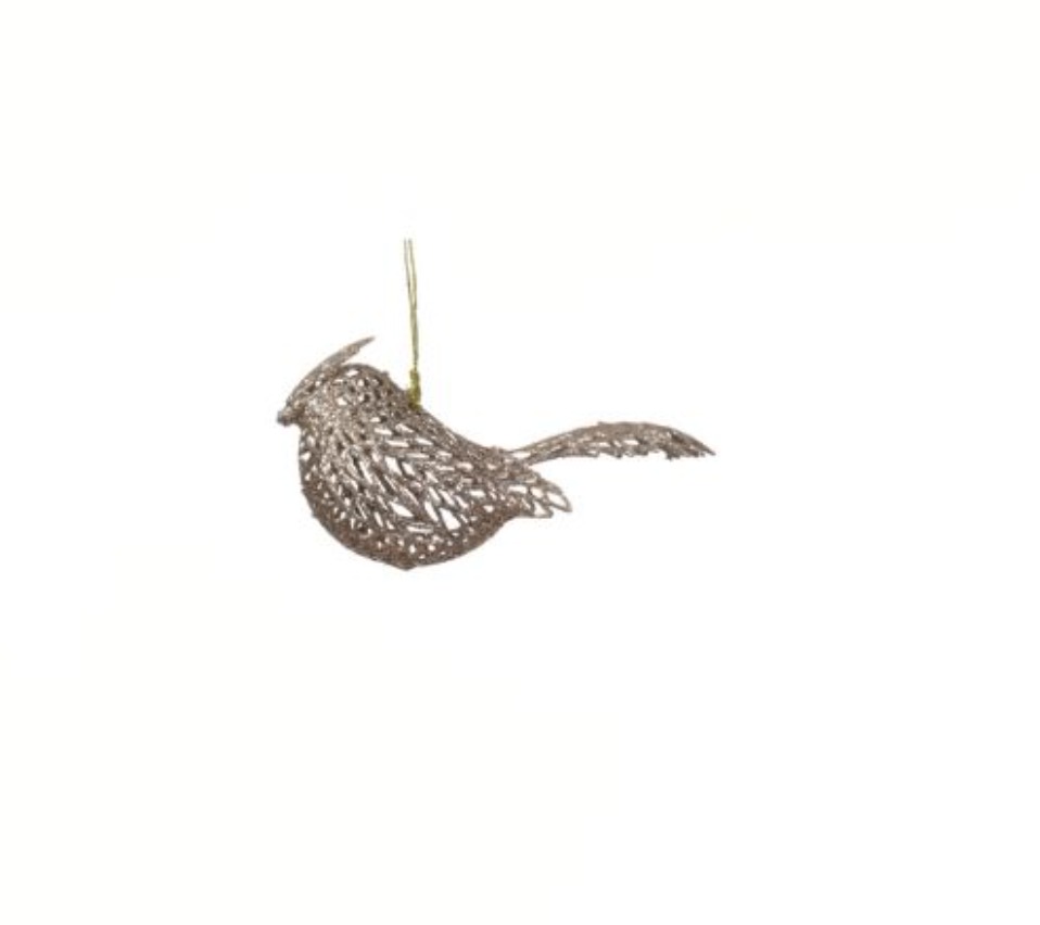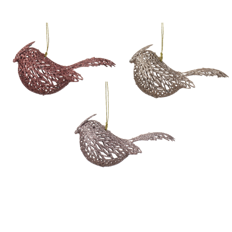 Տոնածառի խաղալիք փայլուն թռչուն, velvet pink/pearl/blush pink, 11սմ